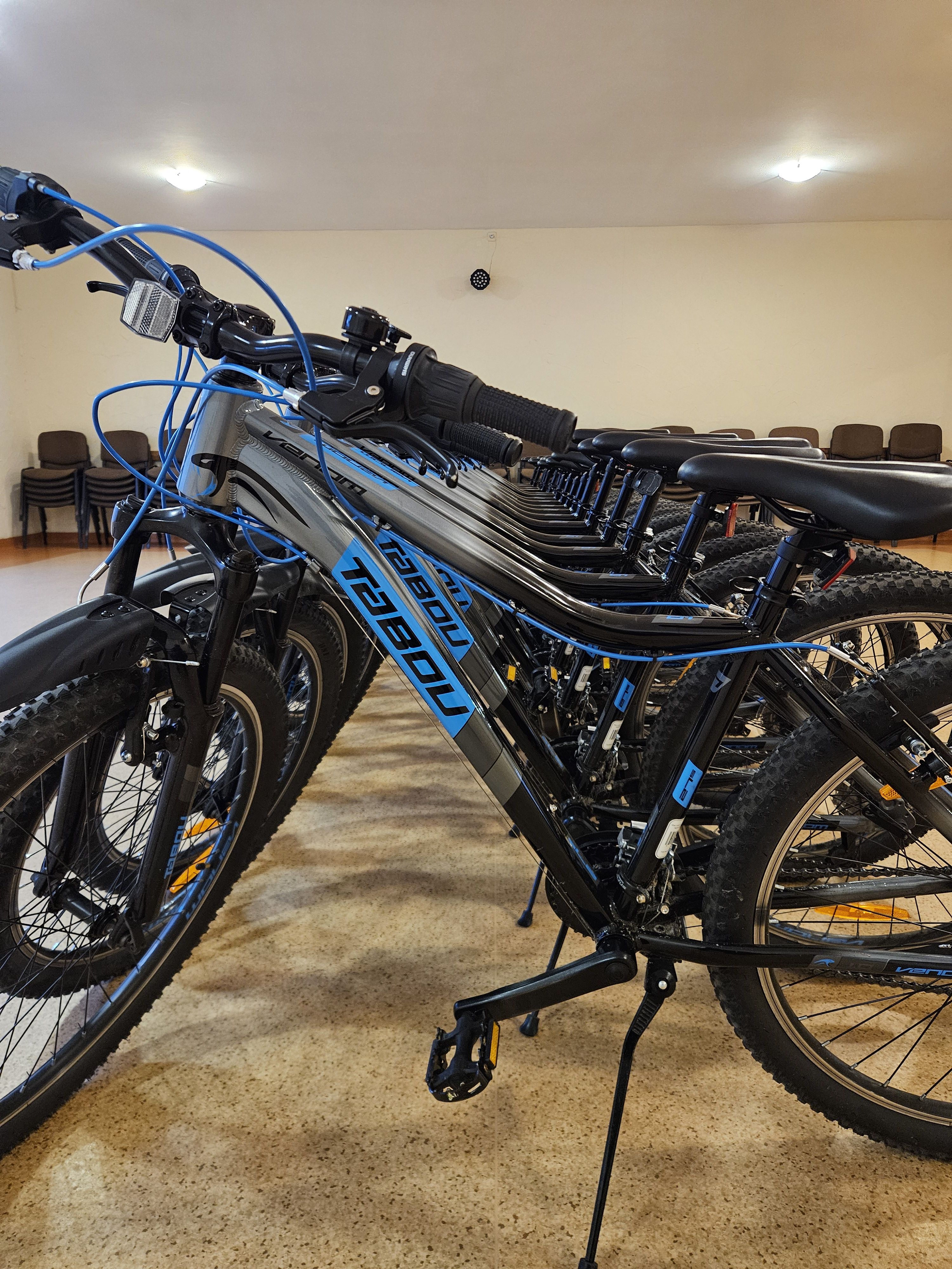 Na stanie wypożyczalni znajduje się 18 szt nowoczesnych młodzieżowych rowerów firmy TABOU BIKES. Rowery są całkowicie nowe, zostały zakupione w czerwcu 2025 roku. Jest to model Venom 1.0 w rozmiarze 27,5/17" i kolorze szaro - niebieskim. Wypożyczalnia dysponuje również wysokiej klasy kaskami ochronnymi oraz kamizelkami odblaskowymi.